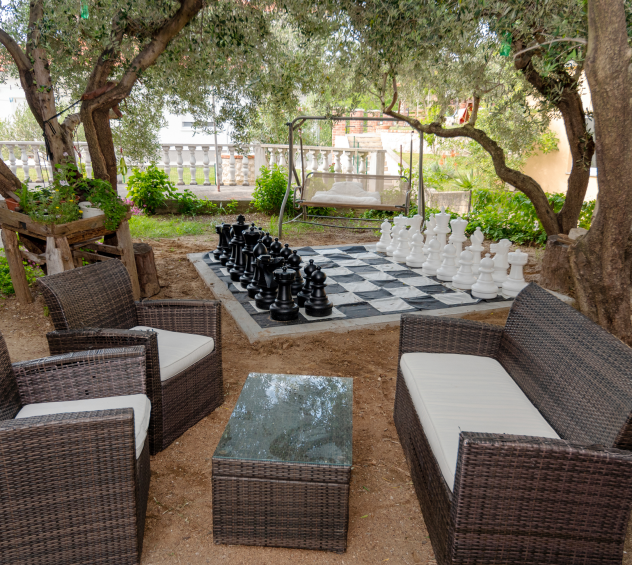 Bilo da ste zaljubljeni par, obitelj s djecom ili grupa prijatelja, Baja Apartmani imaju nešto za svakoga. Za naše male goste, tu je posebno osmišljeno dječje igralište gdje će se moći neograničeno zabavljati i stvarati nezaboravne uspomene. Za ljubitelje šaha, nudimo prostoriju opremljenu šahovskim setovima kako biste mogli uživati u igri uz osvježavajući morski povjetarac.
